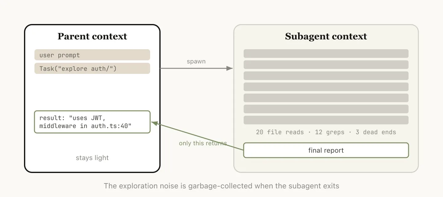 Subagent 本质上是一种上下文管理手段。当你提前知道一块工作会产生大量中间输出、但你不再需要那些中间内容时,它特别有用。